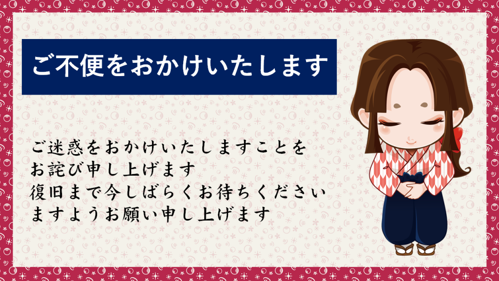 ご迷惑をお掛け致しますことをお詫び申し上げます。