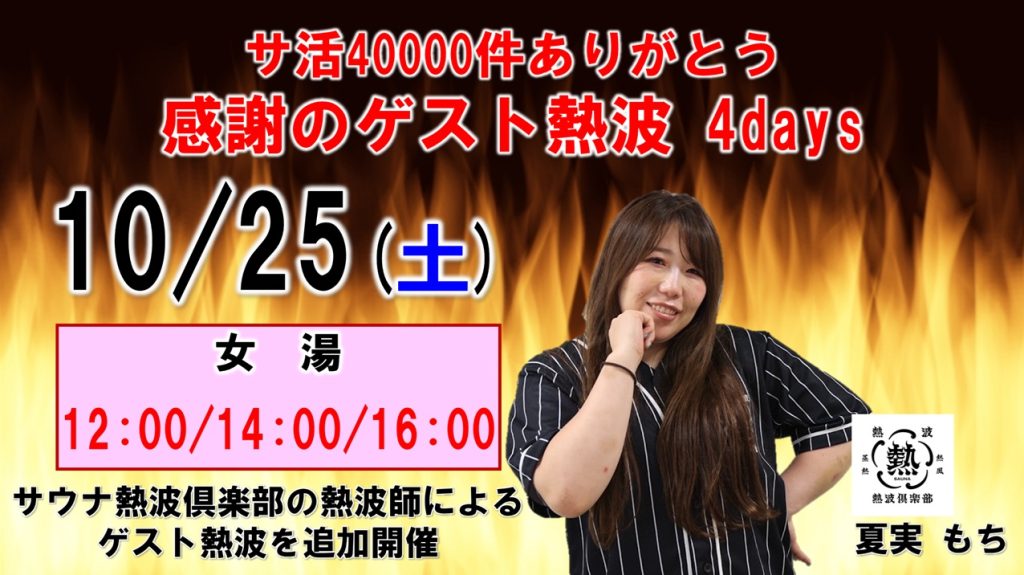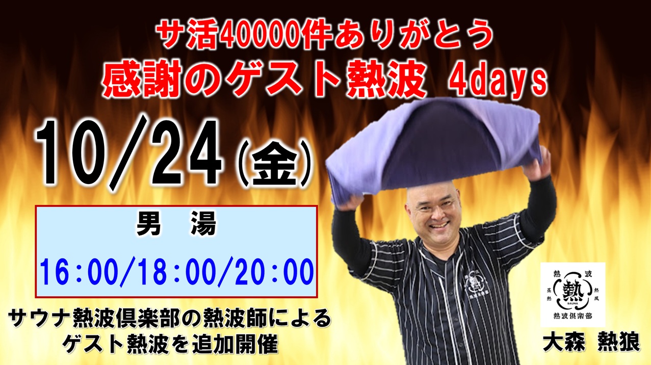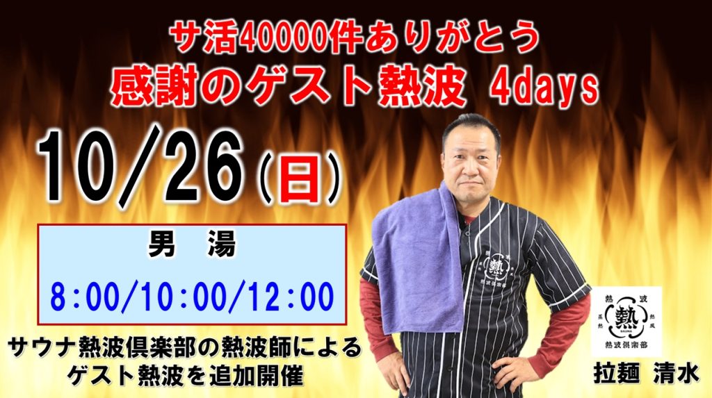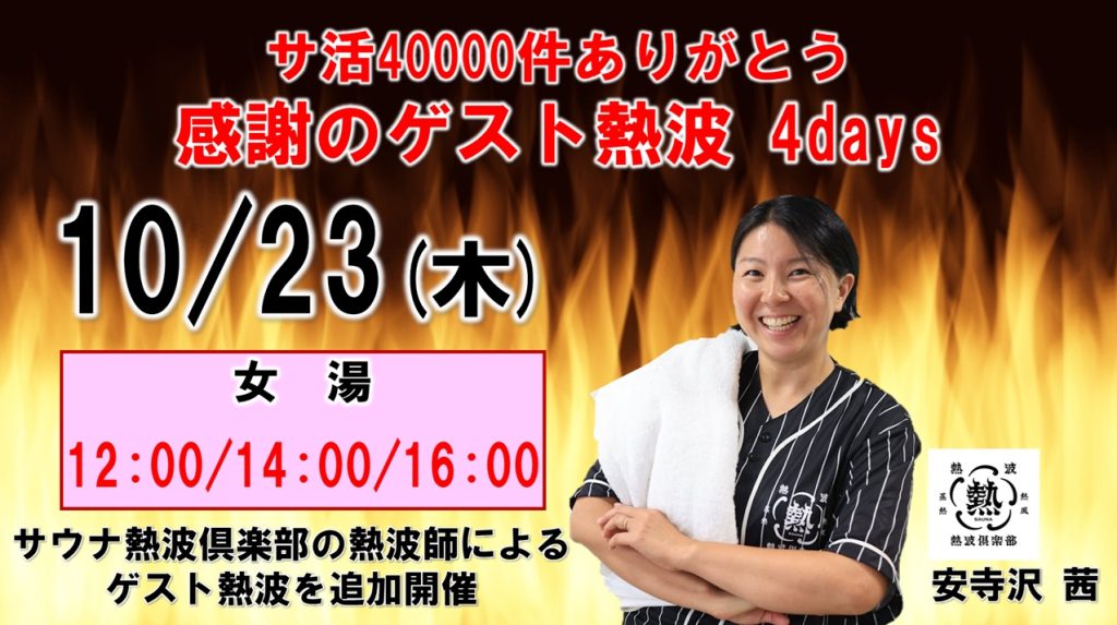 10/23(木)~26(日) サ活40000件ありがとう 感謝のゲスト熱波4daysとして