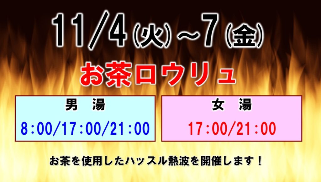 11/4(火)~7(金)は、お茶を使用したハッスル熱波を開催いたします。