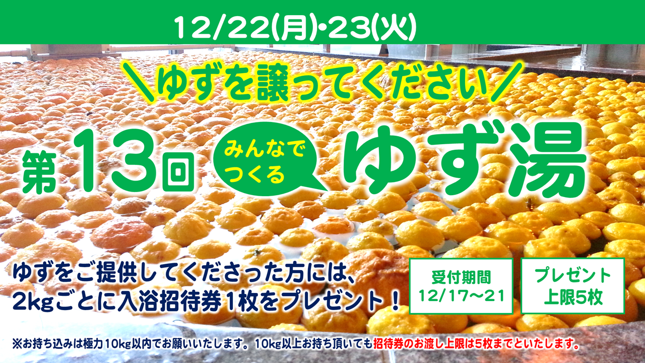 ゆずを譲ってください!「第13回みんなでつくるゆず湯」を開催します!!