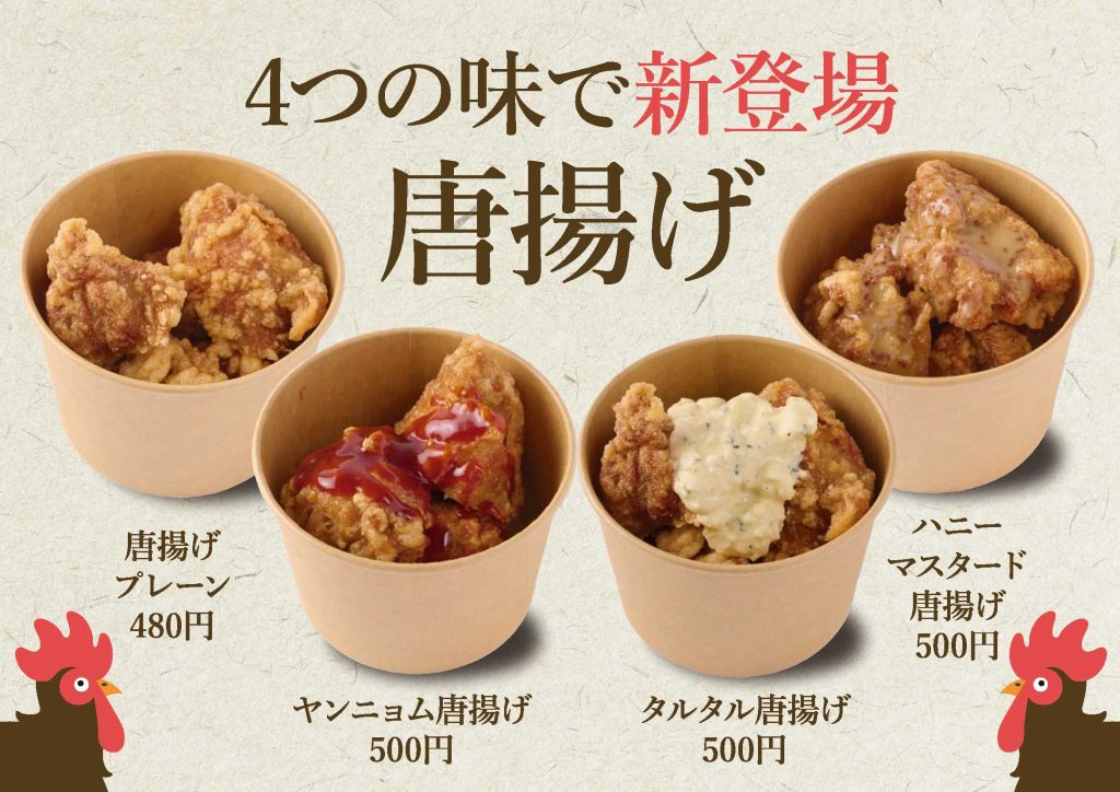 また、唐揚げが4つの味で新登場!