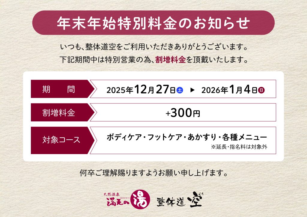 12/27(土)~1/4(日) 入浴料は年末年始特別料金です。