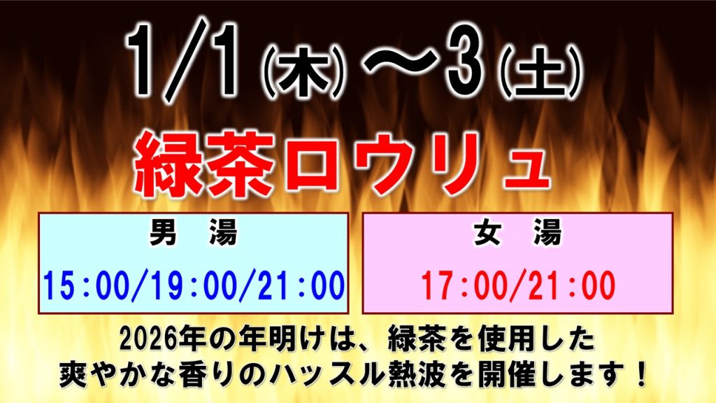 ■1/1(木)~3(土)「緑茶ロウリュ」