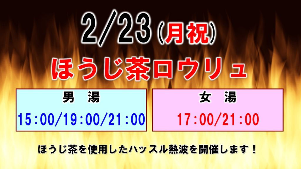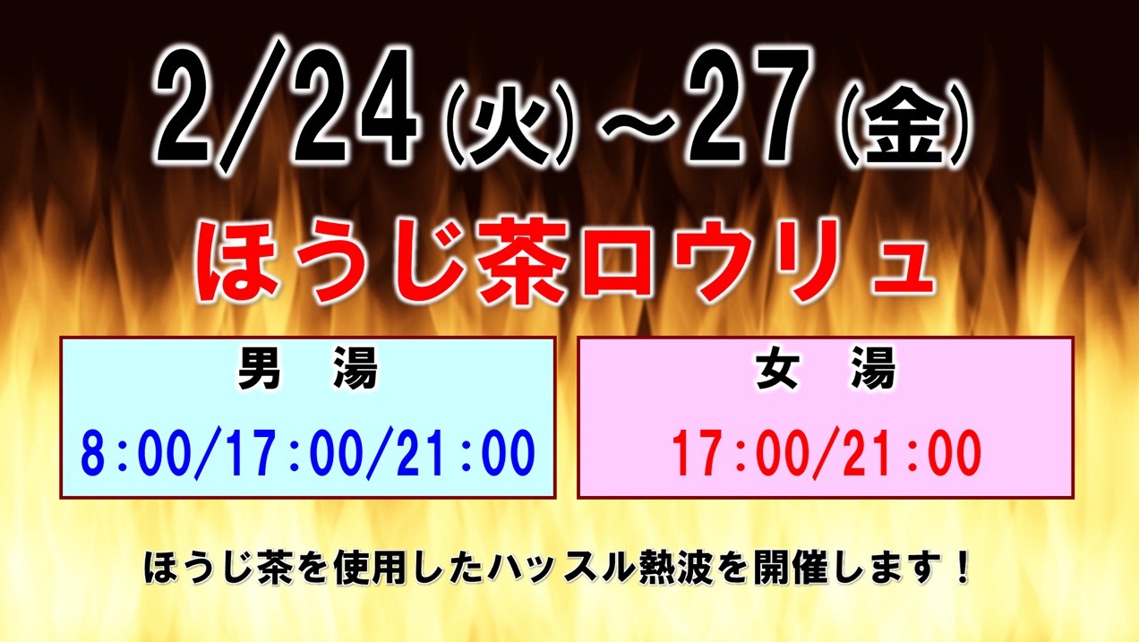2/23(月祝)~27(金)は、ほうじ茶を使用したハッスル熱波を開催いたします。