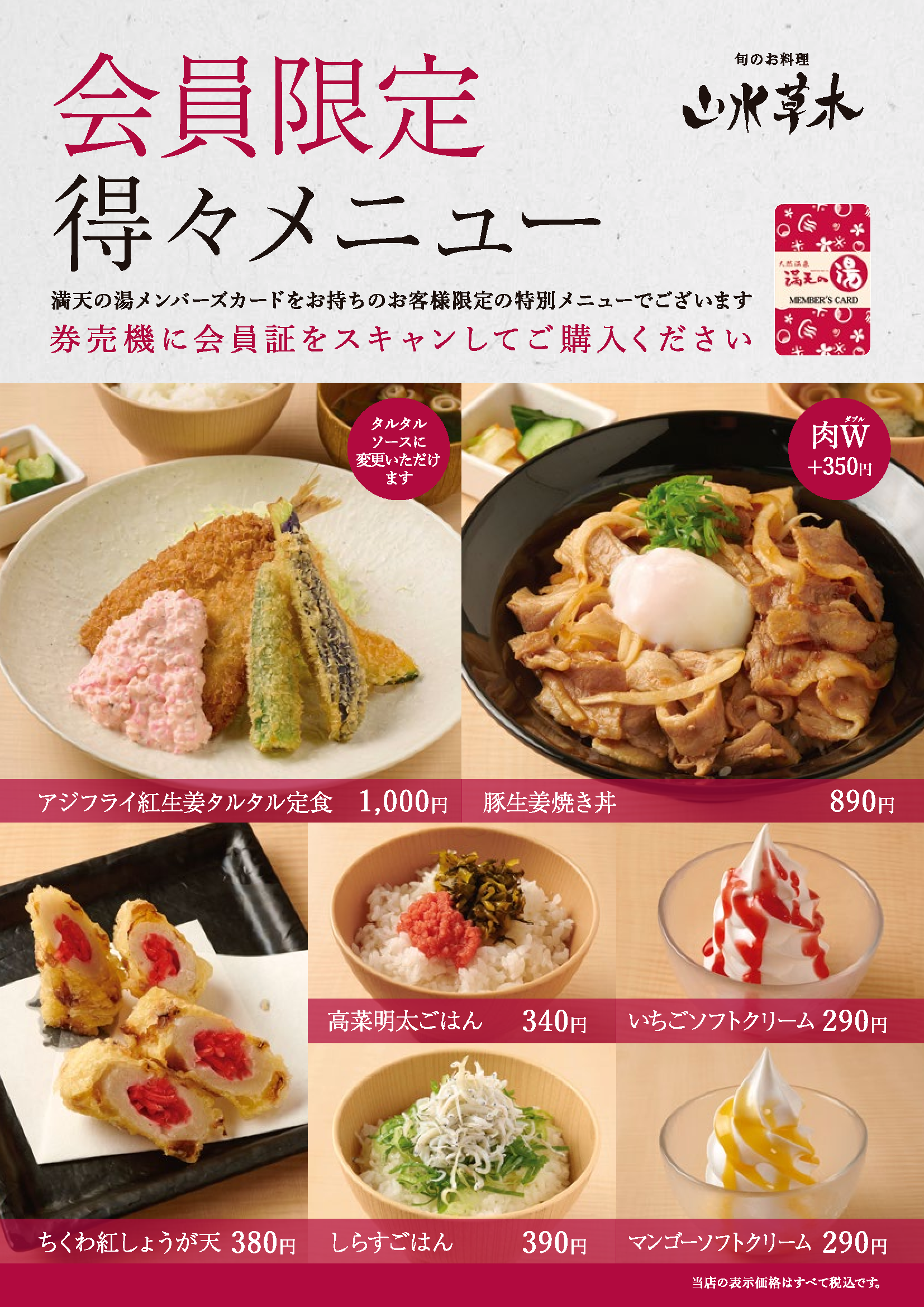 | 平日 | (一般) ¥1,050 (会員) ¥900 |
