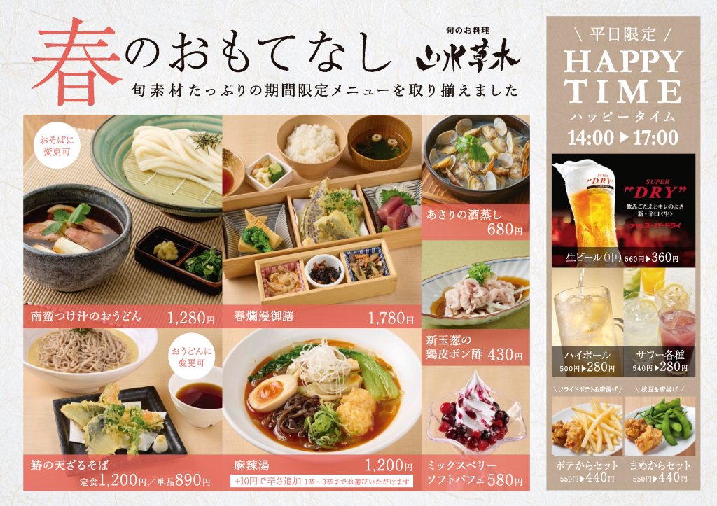 山水草木では、2/18(水)より春の限定メニューを販売いたします。