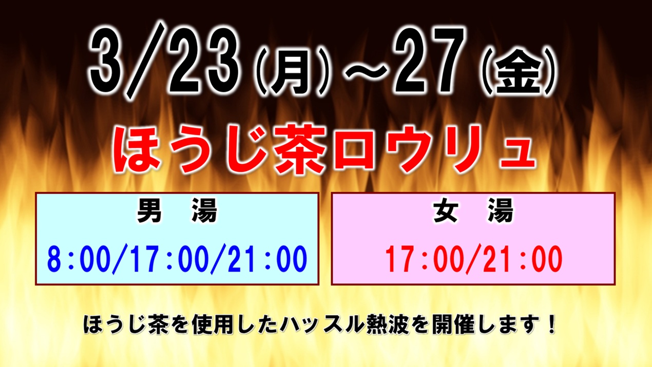 3/23(月)~27(金)は、ほうじ茶を使用したハッスル熱波を開催いたします。